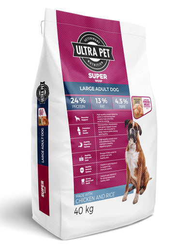 Ultra Dog Superwoof Large Adult Dog Food is a high-quality dog food that has been scientifically developed for dogs that require sustained energy for an active lifestyle.