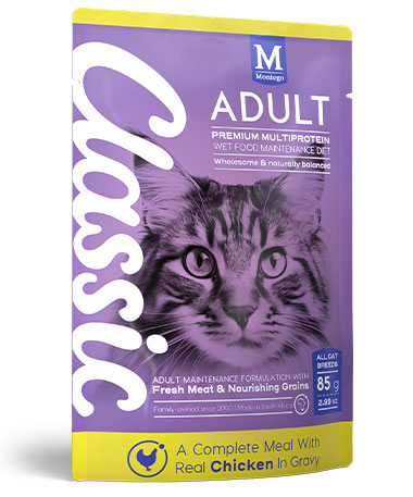 Classic Wet Food provides a complete, balanced and enticingly delicious meal, or a tasty complement to your cat’s daily dry food diet. Serve on top, mixed in or on its own – however they like it!